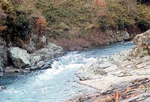 それよりさらに上流では、 初夏の鮎の解禁シーズンともなると朝早くからたくさんの釣り人たちがところせましと竿を出す光景がみられます。
