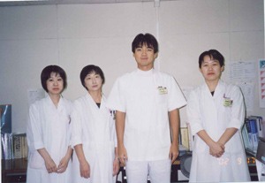 私達は、技師4人の小さい検査室です。しかし、小さいからこそ、小回りがきく。臨床側との連絡を密にすることにより、「付加価値の高い」データが、「迅速に」「見たいと思った時に」提供できる。これからは、ただ結果を返しているだけでは生き残れない、医療とはサービス業であるということを認識し、患者様に満足していただける医療を行なうことが我々の使命であると確信する。
