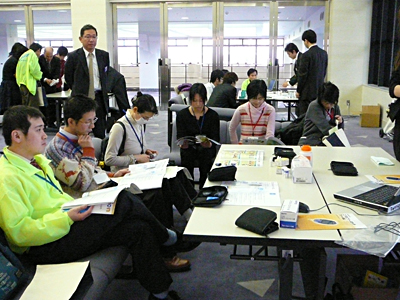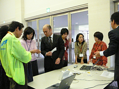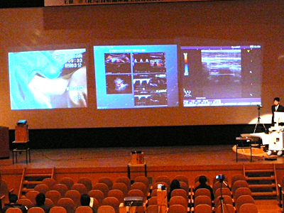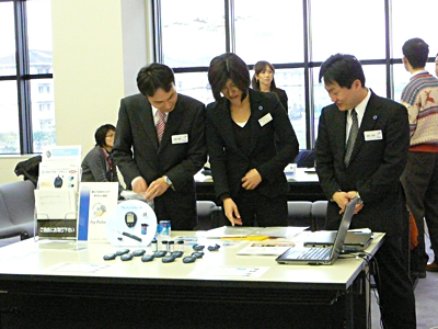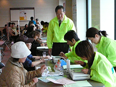 講演会の時間が近づくと私の想像していた以上にたくさんの方が来られて展示パネルや体験コーナーで色々測定されていました。最近はテレビ等でメタボリックという言葉がかなり浸透しているからか興味のある方がたくさん来られたのだと思いました。血管年齢測定のところにもたくさん来られて順番待ちをしていただく状況でした。自分の仕事はというと次々と測定していってあっという間に終わった感じです。病院での患者さんとの対応との違いもあっていい経験になりました。