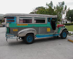 今回滞在しているホテルは両替ができない。滞在費の前払いに応じるため両替を目的に街へ出かける事にした。フロントのお姉さんに、最も近くの両替所を聞くと、「SM North。ジプニーで20分」だという。いよいよジプニーデビューの時がやってきたようである。ジプニーとは、米軍払い下げのジープの荷台を改良した庶民の乗合小型バスのことであるが、今では町の小さな自動車工場で板金をして新たに生産していると思われる。ジプニーは、場所によっては24時間営業と営業時間が長く、安くて、細い道も通って客を拾うので、ルートが分かり乗りこなすことができれば非常に便利な乗り物である。どれくらい安いかと言うと、タクシーで100ペソ(400円)くらいのところを10ペソで行く。ジプニーの前・横に行き先が書かれているので、ジプニーが近づいてくると、それをすばやく読み取り、乗るなら手を挙げてバスを止める。空席があれば、止まってくれるが、すでに満員の場合は、通過する。後部の入り口から乗降し、左右両脇に据えられた座席に座る。ここでも列車と同じで、フィリピン人は隙間があれば、ぎゅうぎゅうとおしりをねじ込んでくる。定員は20名も乗ったら限界である。バス代金は下りるまでに、運転手に渡さなければならない。後部に座席を取ったときは、前の乗客に「バヤット(お勘定)」(「バヤトゥ」とも聞こえる)といって手渡すと、その人はまた前の人に「バヤット」と言って手渡し、運転手にまでお金が移動する。お釣りがあれば、逆順に手渡されて、手元まで戻ってくる。面白い仕組みである。いつもジプニーの後部から席が埋まっていくのは、なるべく手渡し業務をしなくてもいいからである思われる。降りるときは「パラ」もしくは「パーラ」と言えば、下ろしてくれる。今回の目的地SM Northは終点なので、言う機会はなかった。